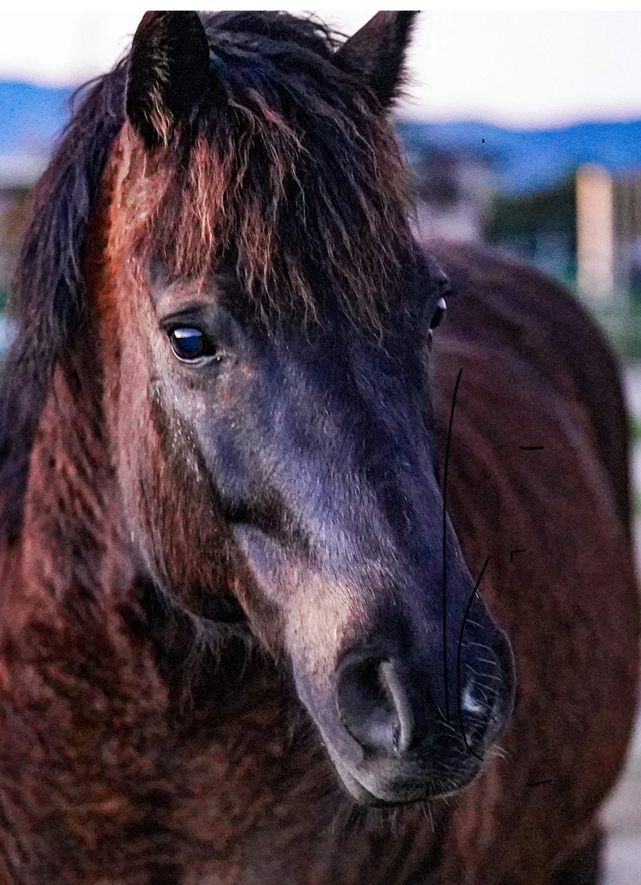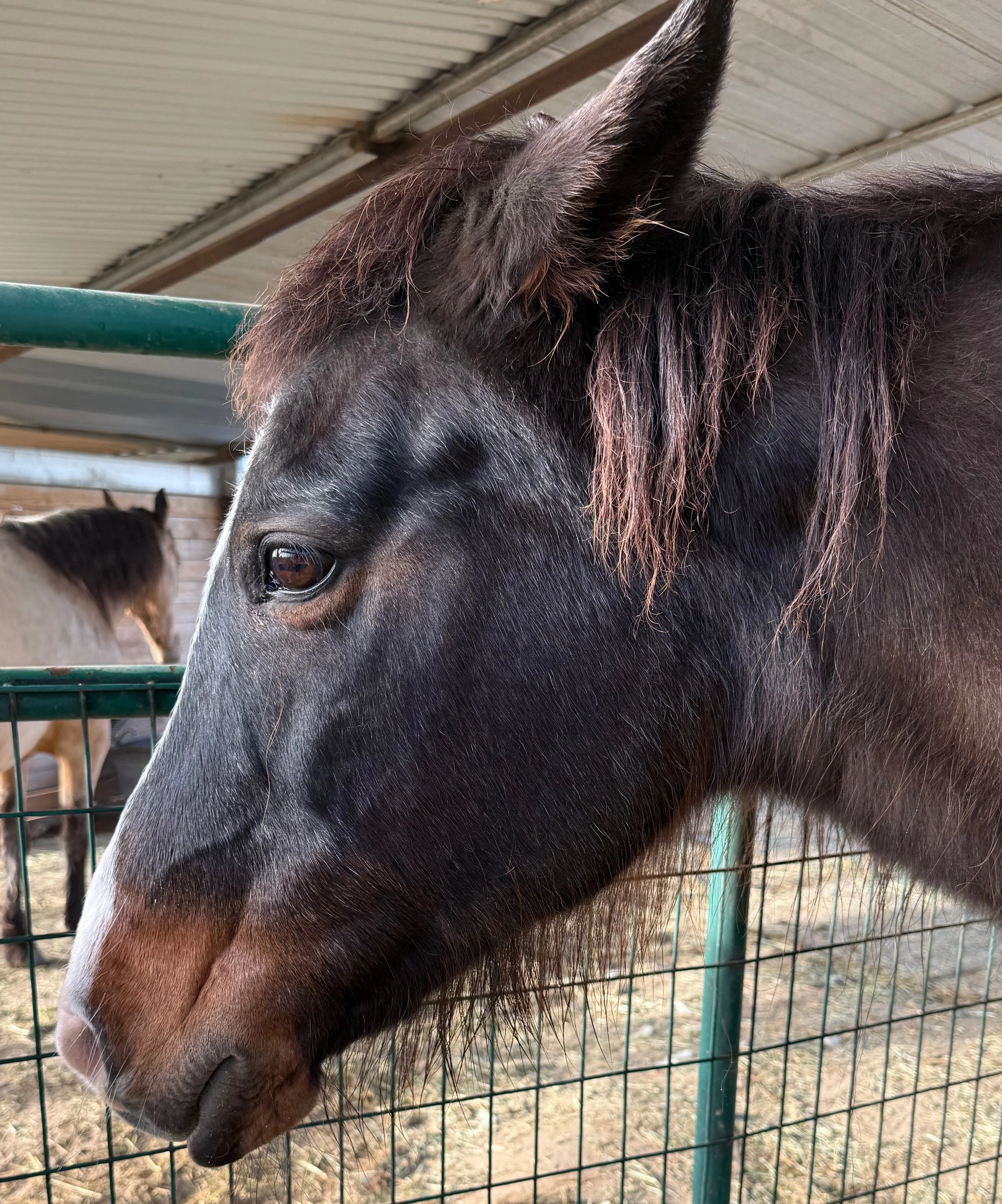 Mita has never forgotten her difficult beginning and has a personality that was shaped by those two first weeks. She doesn’t feel like she fits in like the others in the herd and finds it difficult to accept love. She has a remarkable work ethic and tries to prove herself worthy. She feels she can speak out loud as people do and nickers and whinnies with a voice she expects us to understand.